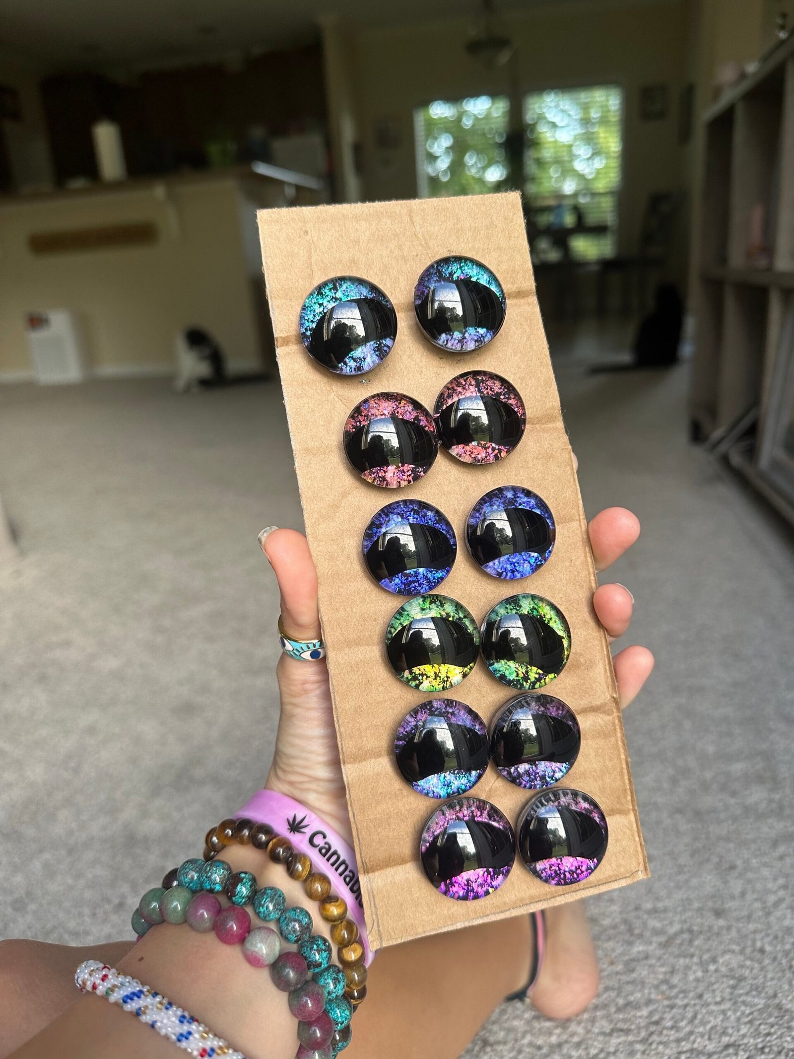 This is a MADE TO ORDER listing for 6 sets of black pupil KIDNEY BEAN safety eyes. These safety eyes are handpainted by myself. There are blue, green, pink, dark blue, red/orange, and a blue pink holographic eyes. Check out the video above to see how the colors change. These eyes are 30mm each pair includes two backs. COLORS WILL VARY as all eyes are handpainted and unique. If you have any questions, feel free to message me.